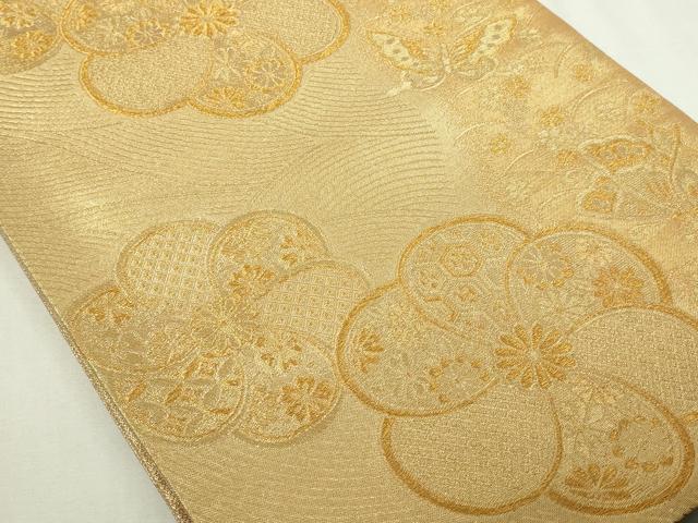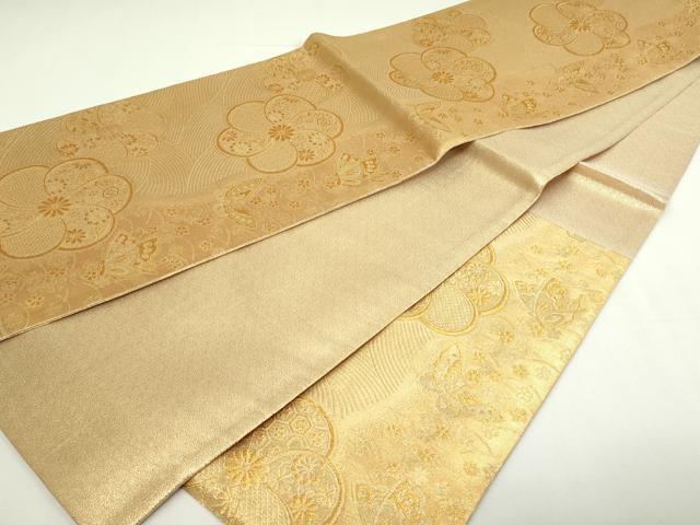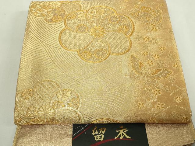 Heiwa-ya Kimono ◎ Six-way Pattern Fukuro Obi (Sash) - Rui (Dress) - Flower and Butterfly Design - Gold Thread - Pure Silk - Excellent Item DAAY7645sf