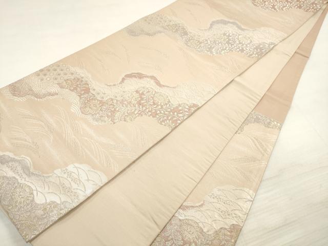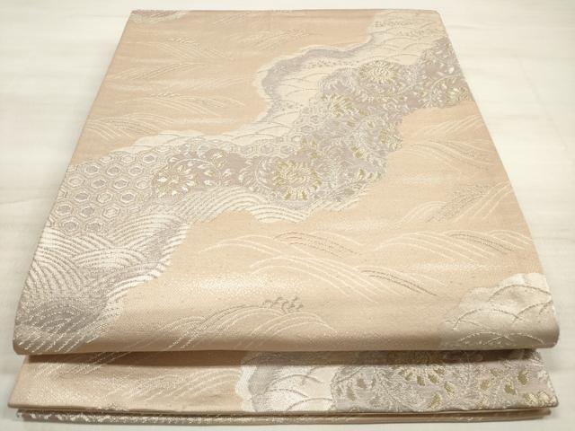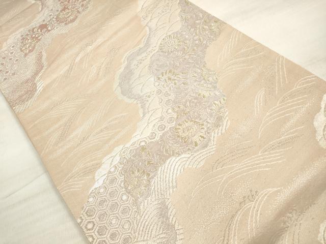 Heiwaya Kimono ◎ Six-panel patterned obi sash, Michinaga wave and flower design, gold and silver thread, pure silk, exquisite item, DABE8192xg