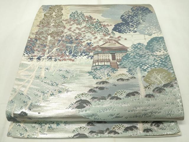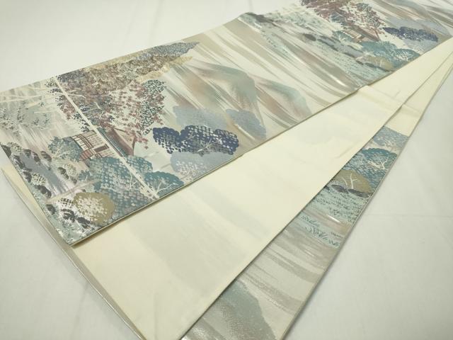 Heiwa-ya Kimono ◎ Six-way Pattern Obi, Landscape Design, Silver Thread, Pure Silk, Excellent Item, CAAZ0090dy
