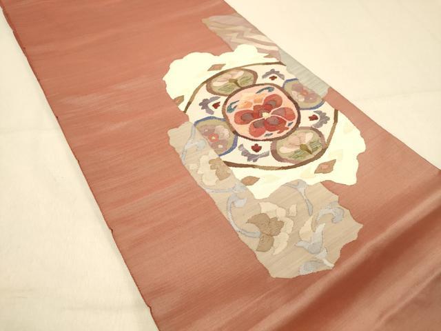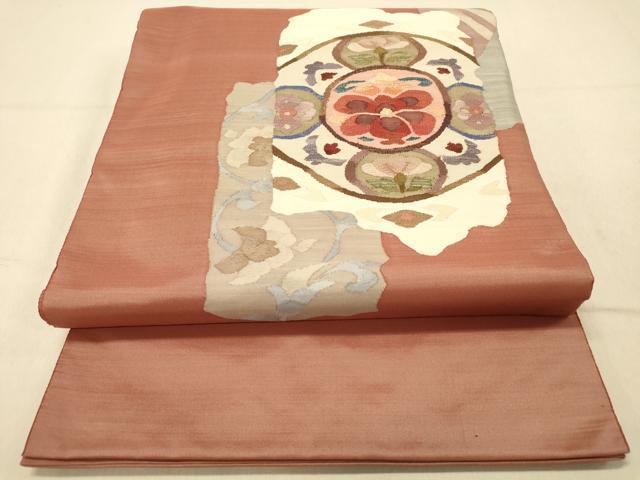 Heiwa-ya Kimono ◎ Taiko Pattern Fukuro Obi (Sash) with Scoop Weave, Sarasa Arabesque Design, Gold Thread, Pure Silk, Excellent Item, DAAY4517jm