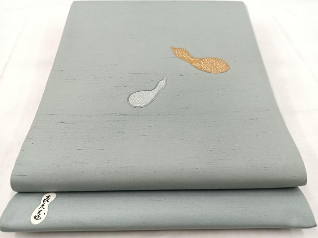 Heiwaya Kimono ◎ Taiko Pattern Obi (Sash) - Artist-made, Tsumugi Silk, Embroidery, Patchwork, Gourd Design, Pure Silk, Excellent Quality, Unused, BAAW8953yc