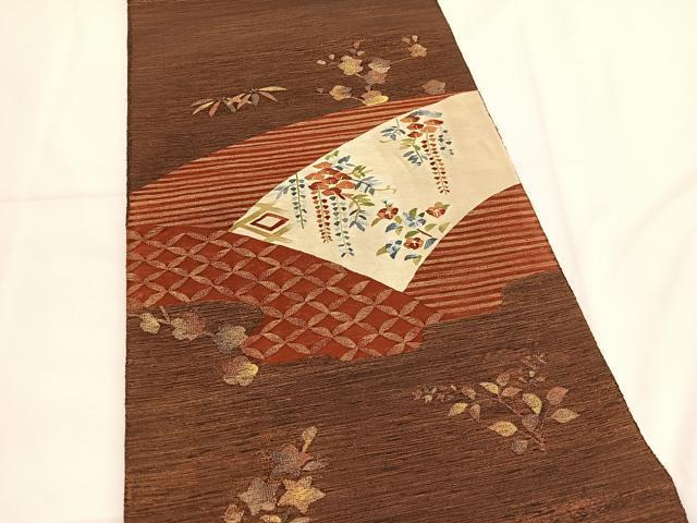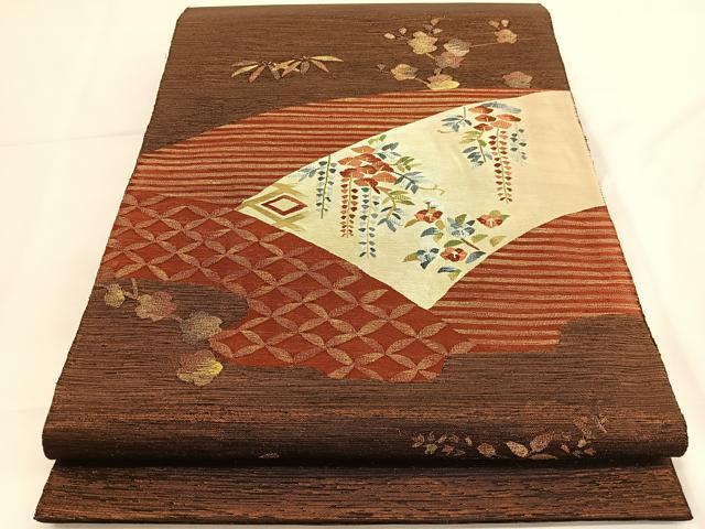 Heiwa-ya Kimono ◎ Taiko Drum Pattern Obi, Tsumugi Fabric, Scoop Weave, Wisteria Flower Pattern, Gold Thread, Pure Silk, Excellent Condition, Unused, BAAV8969hv