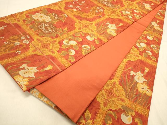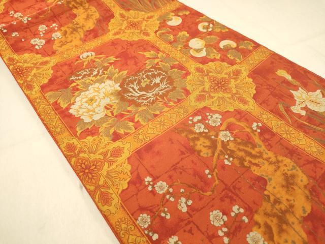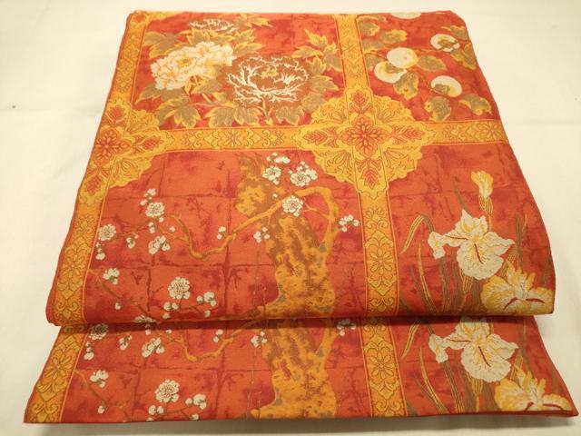Heiwa-ya Kimono ◎ Yamaki Orimono's Manyo and Shoba Full-Length Pattern Obi with Ceiling Flower and Peony Design, Pure Silk, Excellent Item, DAAX6045jm