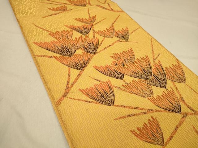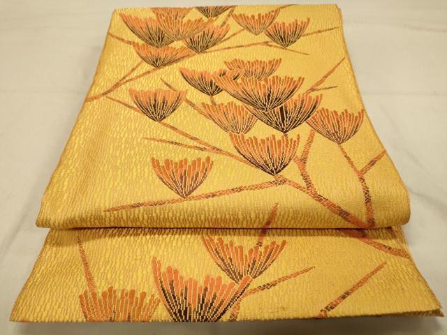 Heiwaya Kimono ◎ Authentic Chikuzen Hakata-ori 8-inch Nagoya Obi with Branch and Flower Pattern, Pure Silk, Excellent Quality, DAAZ3867jm