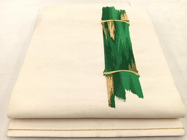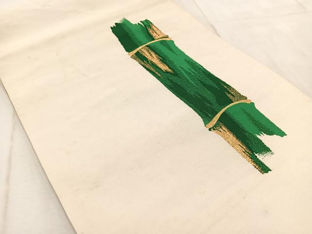 Heiwaya Kimono ◎ Namakaki Hontsuri (Scratched Print) 8-inch Nagoya Obi (Sash) with Bamboo and Gold Thread, Pure Silk, Excellent Item, BAAV4281yc