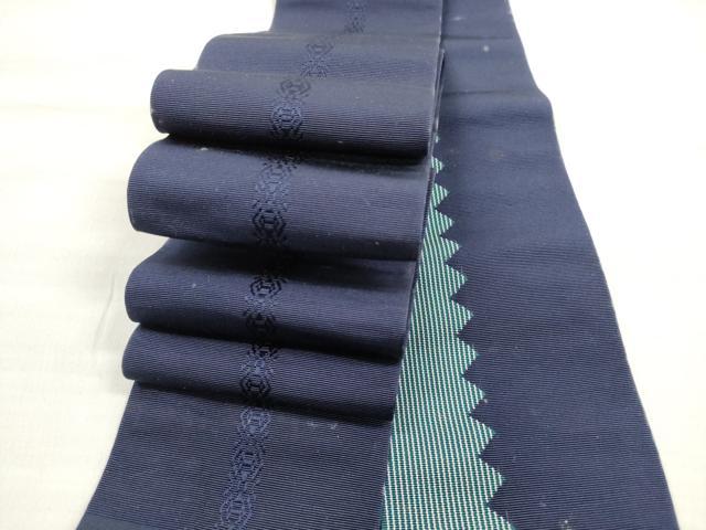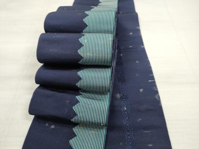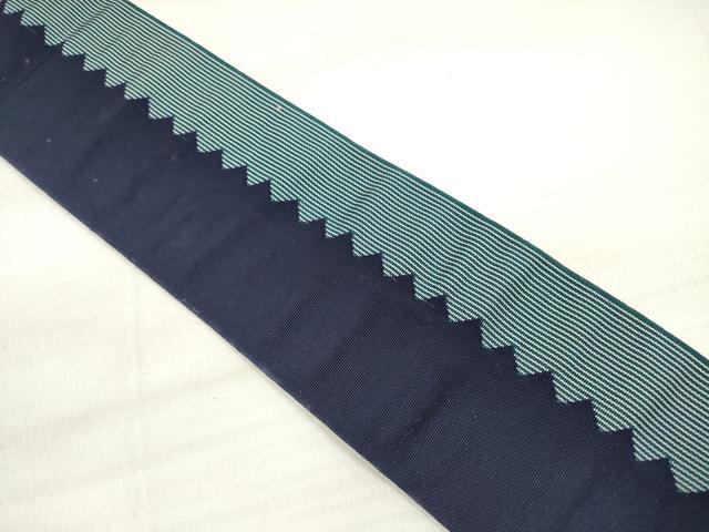 Heiwaya Kimono ◎ Men's Authentic Chikuzen Hakata Weave Double-Sided Obi Belt, Varied Stripe Pattern, Dark Indigo, Made by Nishimura Textile, with Certificate of Authenticity, Pure Silk, Excellent Quality, DABE2352xg