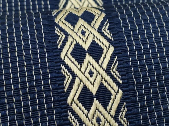 仏具のひとつである独鈷、華皿を基にした幾何学模様が織られています。
