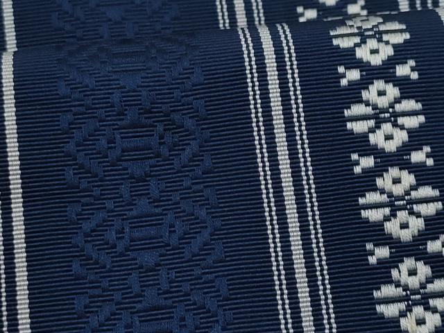 仏具のひとつである独鈷、華皿を基にした幾何学模様が織られています。
