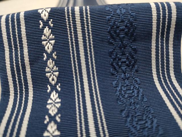 仏具のひとつである独鈷、華皿を基にした幾何学模様が織られています。