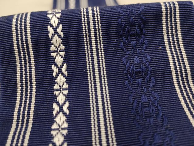 仏具のひとつである独鈷、華皿を基にした幾何学模様が織られています。