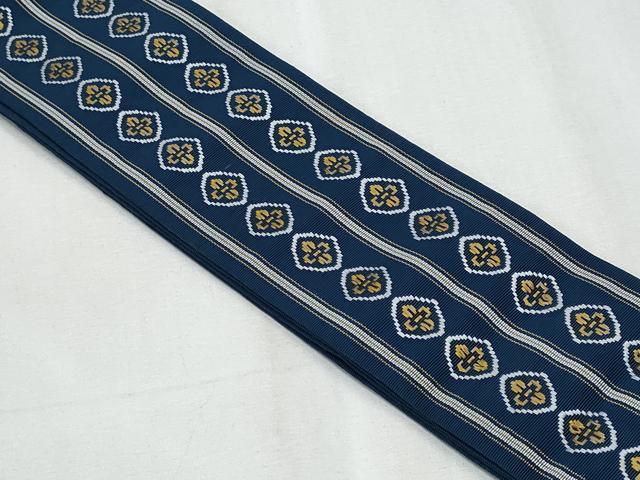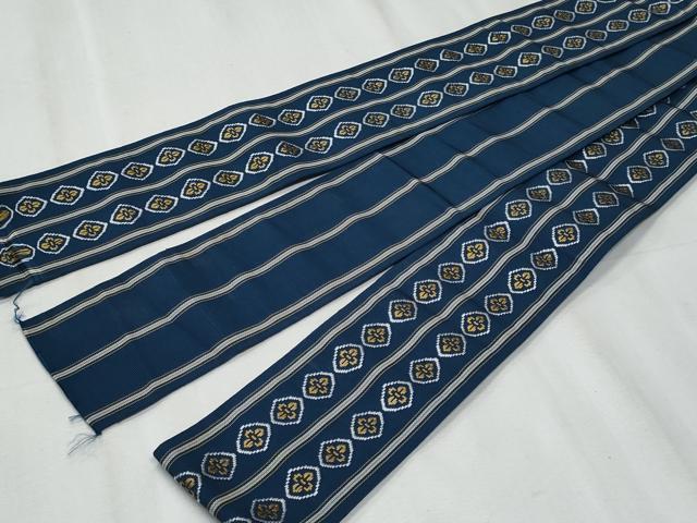 Heiwaya Kimono ◎ Men's Authentic Chikuzen Hakata Weave Obi (Sash) with Diamond Flower Pattern, with Certificate of Authenticity, Pure Silk, Excellent Quality, CABF1015fb