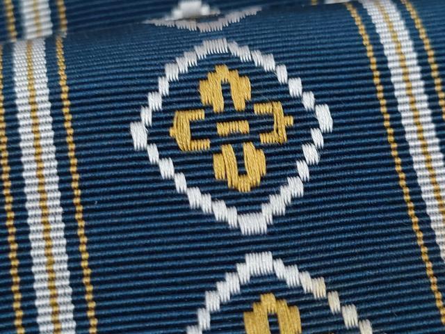 仏具のひとつである独鈷、華皿を基にした幾何学模様が織られています。