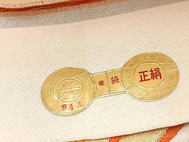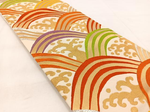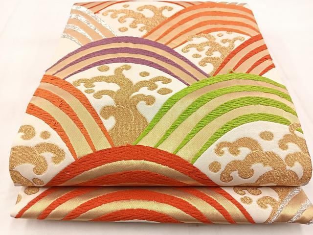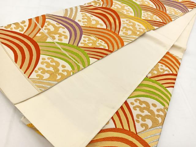 Heiwaya Kimono ◎ Nishijin Six-Panel Patterned Obi (Sash) - Karaori Weave - Tateha Seigaiha Pattern - Gold and Silver Thread - with Certificate of Authenticity - Pure Silk - Excellent Quality - BAAW8830yc