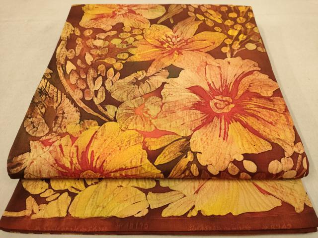 Heiwa-ya Kimono ◎ Nishijin, long-established, Watanabe-made, hand-woven, full-length obi with floral and puffed weave, pure silk, exquisite item AABB4004dt