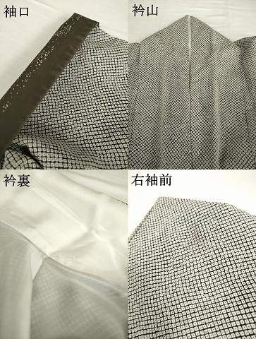 状態は接写画像のように袖口・衿山・右袖前に薄い汚れ、衿裏に破れがございますが