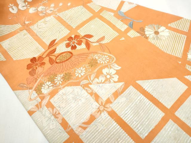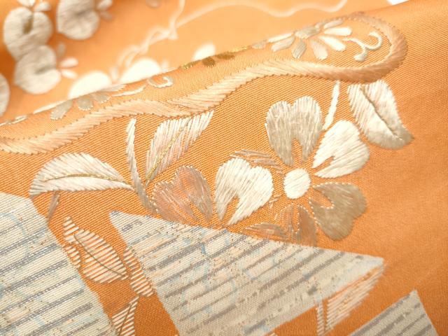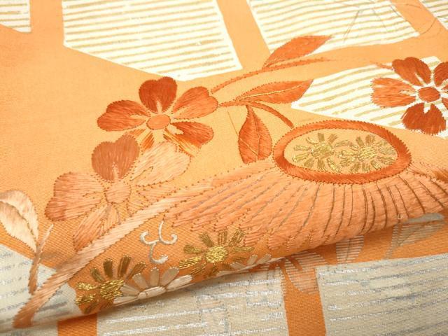 状態は接写画像のように表地所々・裏地・前柄・手先に箔剥がれ・汚れ、太鼓〜太鼓上部に刺繍部分解れ、裏地に箔剥がれ・汚れにがございます。