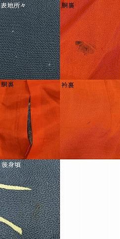 状態は接写画像のように表地所々・衿裏・後身頃に薄い汚れ、胴裏に薄い汚れ・糸解けがございます。