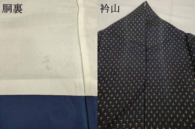 状態は接写画像のように胴裏・衿山に薄い汚れがございますが