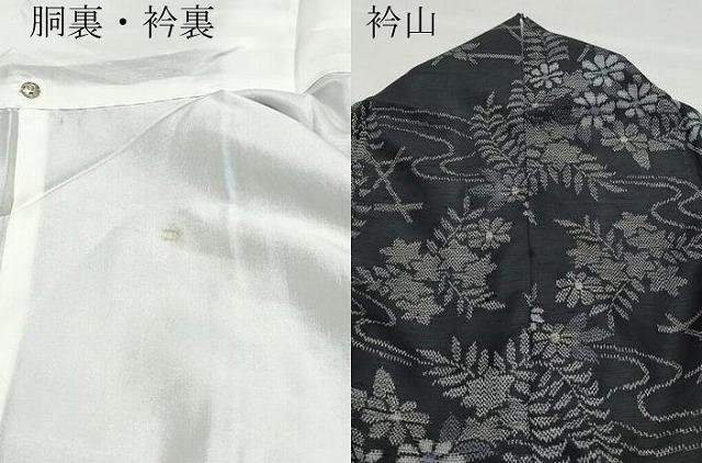 状態は接写画像のように胴裏・衿裏にホックシミ、衿山に薄い汚れがございますが