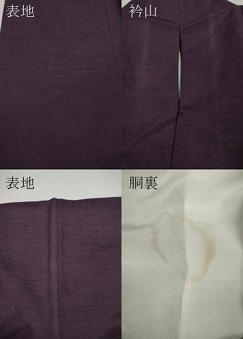 状態は接写画像のように表地所々にヤケ、表地所々・衿山・胴裏に薄い汚れがございます。