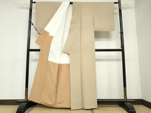 Heiwa-ya Kimono: High-quality plain kimono with a designer crest design, hazel-colored, pure silk, exquisite workmanship, DAAZ7086ud