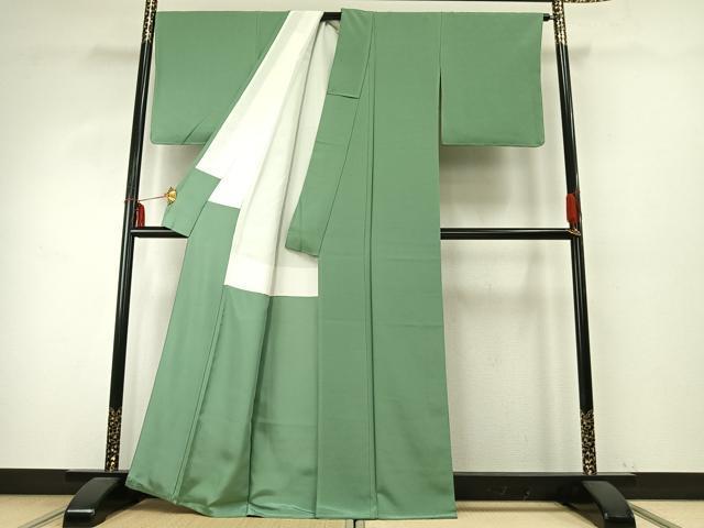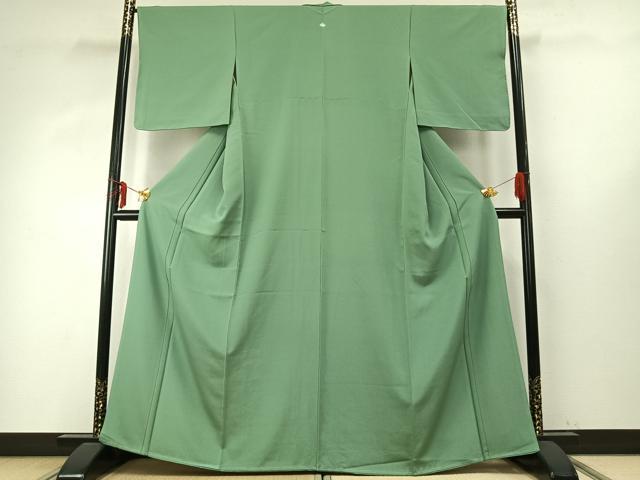 Heiwa-ya Kimono: High-quality plain kimono in willow-colored silk. Excellent quality. AABD8512fy