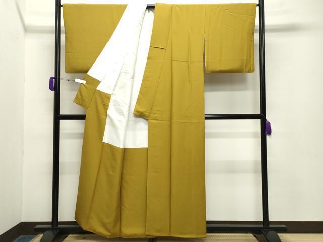 Heiwa-ya Kimono: High-quality solid-color kimono in mustard, pure silk, excellent quality, CABA9907gh