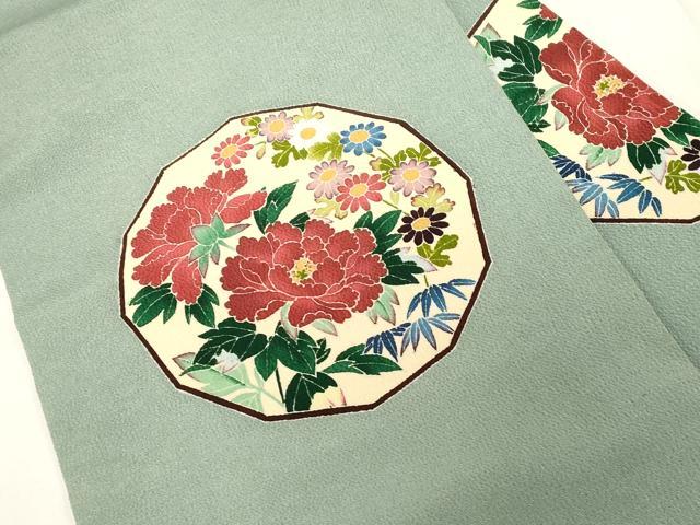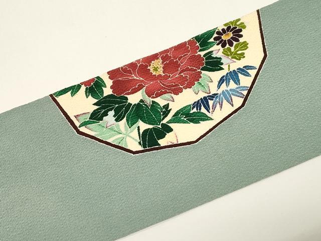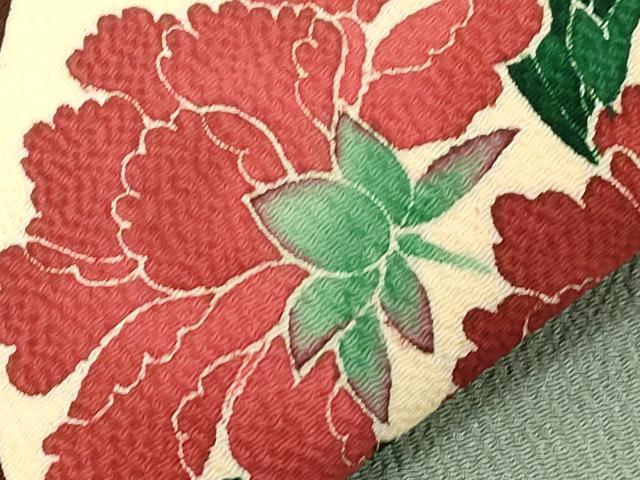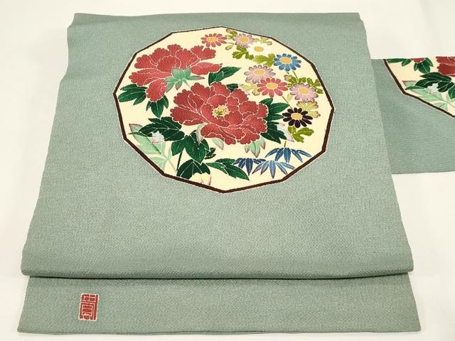 Heiwaya Kimono ● Nine-inch Nagoya Obi (Kimono Sash) - Yuzen Dyeing - Artist's Work - Floral Pattern - Oni-shibo Chirimen Silk - Exceptional Item - CABE3648dy