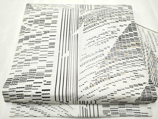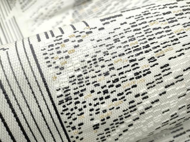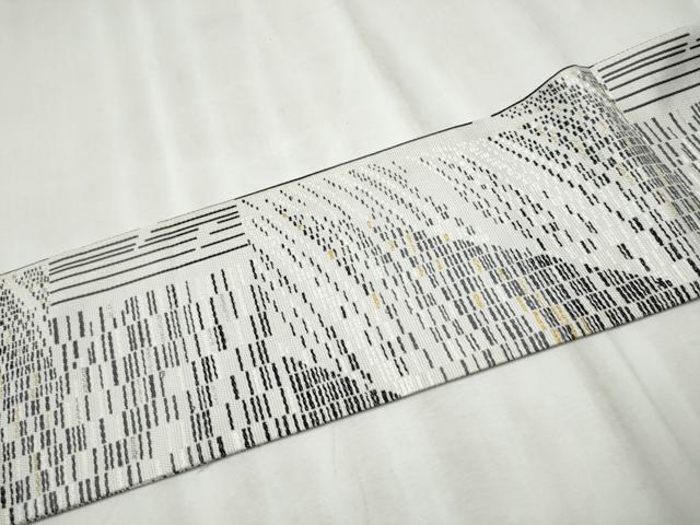 Heiwaya Kimono: 9-inch Nagoya Obi (Sash), Geometric Pattern, Gold Thread, Pure Silk, Excellent Quality, CABB5900hy