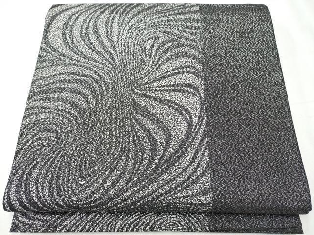 Heiwaya Kimono: Second Generation Kawamura Kyutaro, Full-Length Pattern Obi with Flowing Water Design, Silver-Threaded Ground, Pure Silk, Excellent Item, CABB0515hy