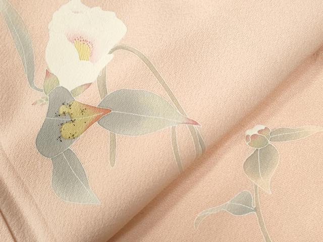 爽やかに薫る優しい地色に伸びやかに咲き誇る花が美しく女性を彩ります。