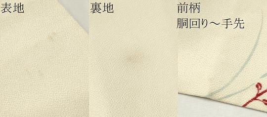状態は接写画像のように表地所々・裏地・胴回り〜手先・前柄に汚れがございます。