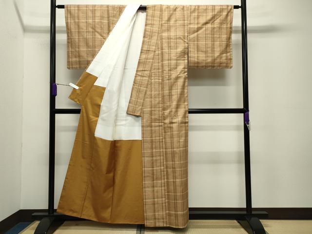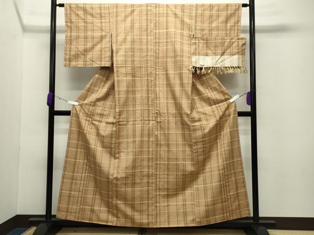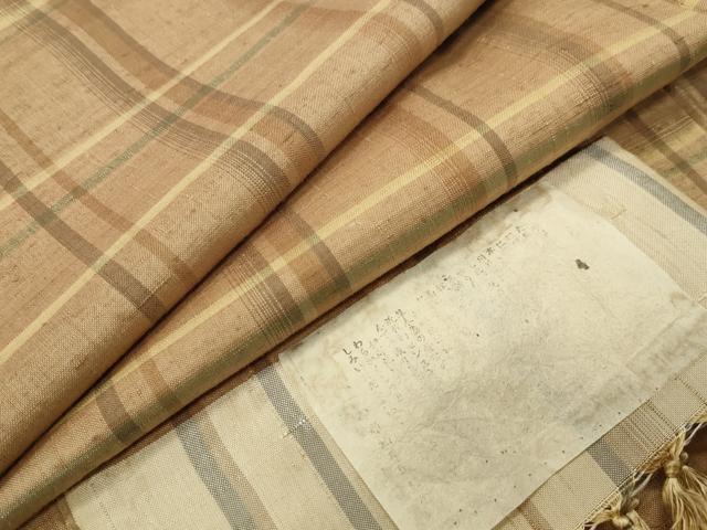 Heiwaya Kimono ● Traditional Craft Ina Tsumugi Handwoven Checkered Pattern with Certificate of Authenticity Pure Silk Excellent Quality Unused CABC8299gh