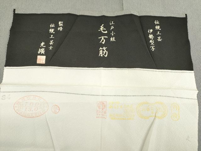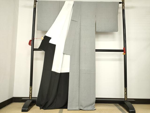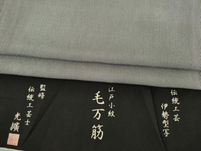 Heiwaya Kimono: Traditional craftsman Mitsuhiro Hattori's "Komamanji" (hair-stripe pattern) in white and black, made of Tango crepe fabric with black base and hem, made of pure silk, a masterpiece, AABC9996ck