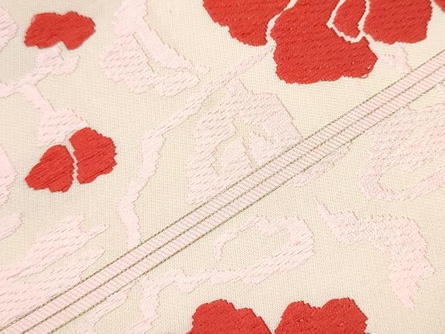 状態は接写画像のように表地所々・前柄・胴回り〜手先・裏地に汚れ、唐織部分に糸解けがございます。