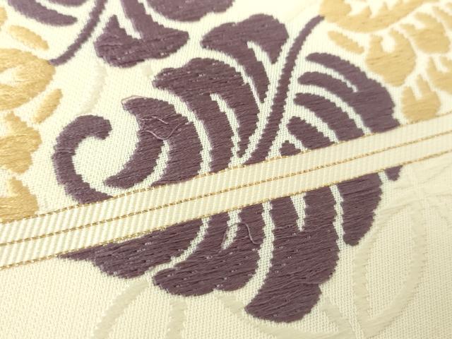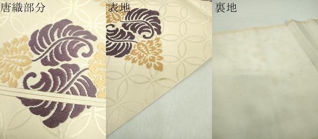 状態は接写画像のように唐織部分に若干の糸よれ、表地所々、裏地所々に薄い汚れがございます。