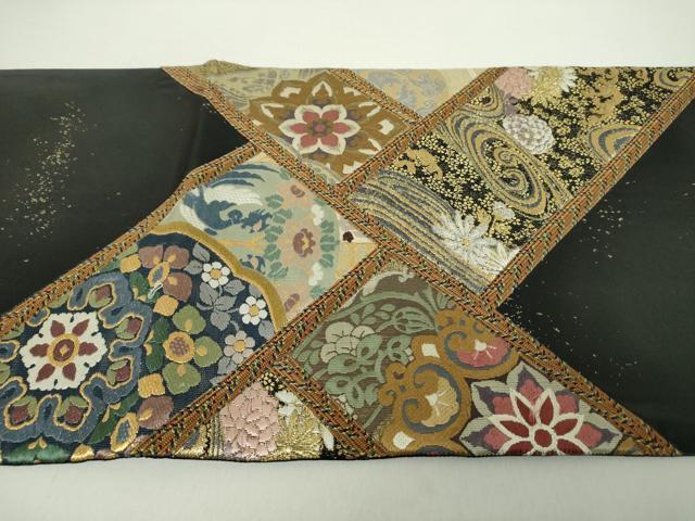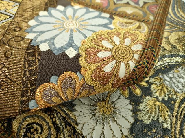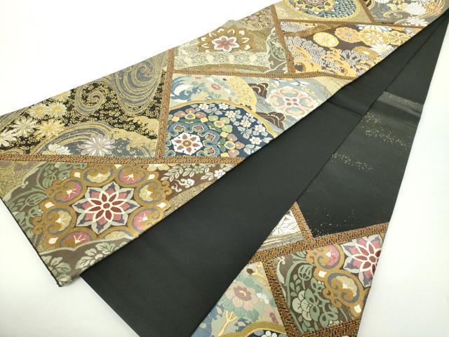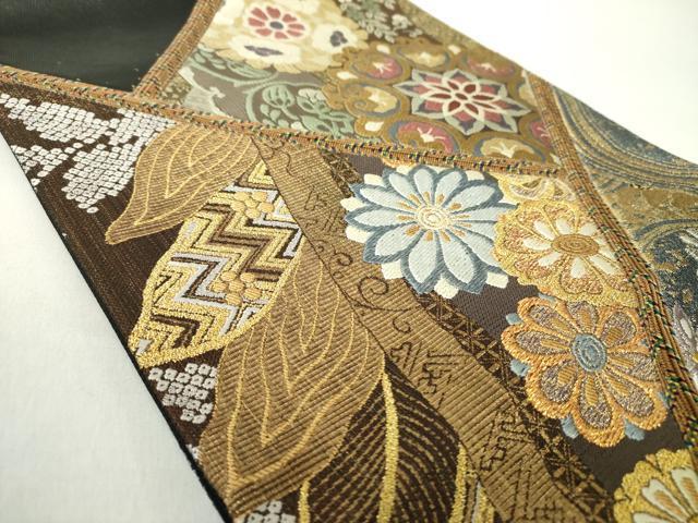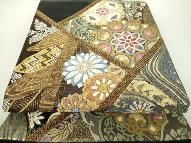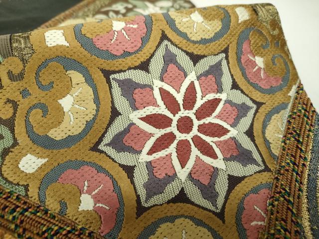 Heiwa-ya Kimono: Six-pass pattern obi with inlay, standing wave Shosoin floral design, gold and silver thread, pure silk, exquisite item, DABA1212ps