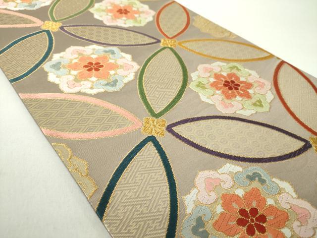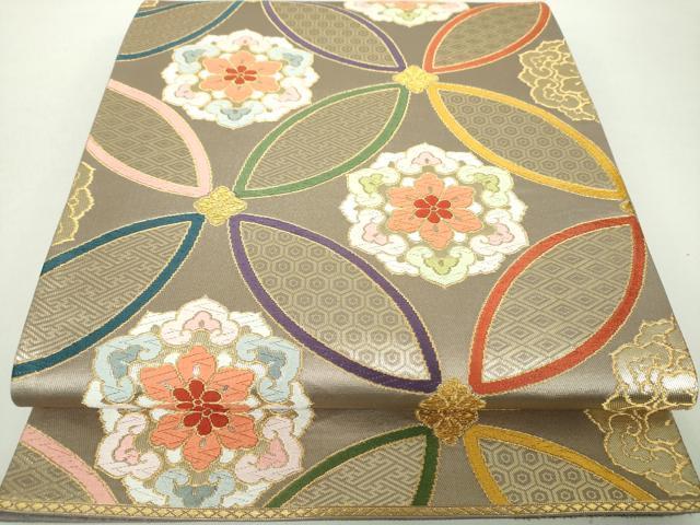 Heiwa-ya Kimono: Six-pass pattern obi, Karaori weave, Shippo floral design, gold thread, pure silk, exquisite item, DABA1194ps