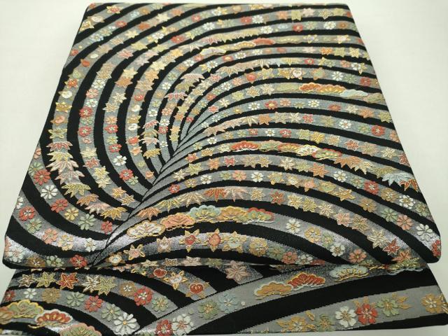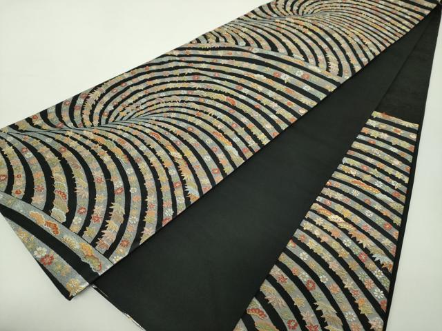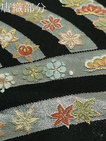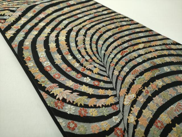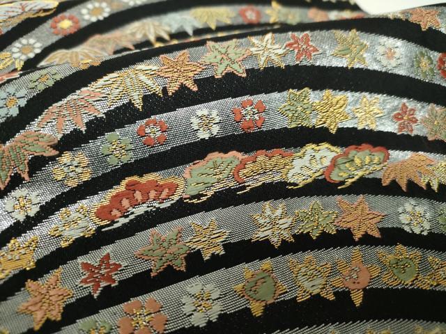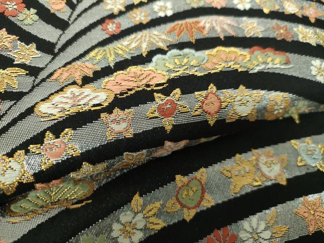 Heiwa-ya Kimono: Six-pass pattern obi, Karaori weave, auspicious floral design, black background, gold and silver thread, pure silk, exquisite item, DABA1192ps