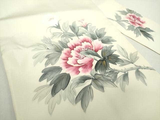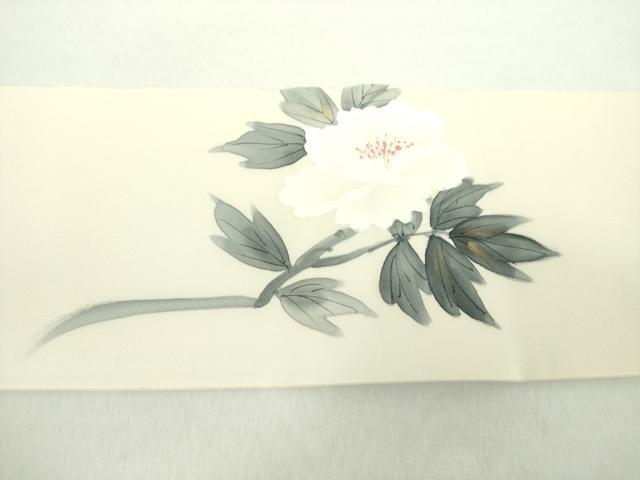 Heiwaya Kimono: Haruyoshi Uchiyama, Hand-painted Shiose 9-inch Nagoya Obi, Hand-painted Peony Design, Gold-Lit, Pure Silk, Excellent Item, DAAZ0309ps