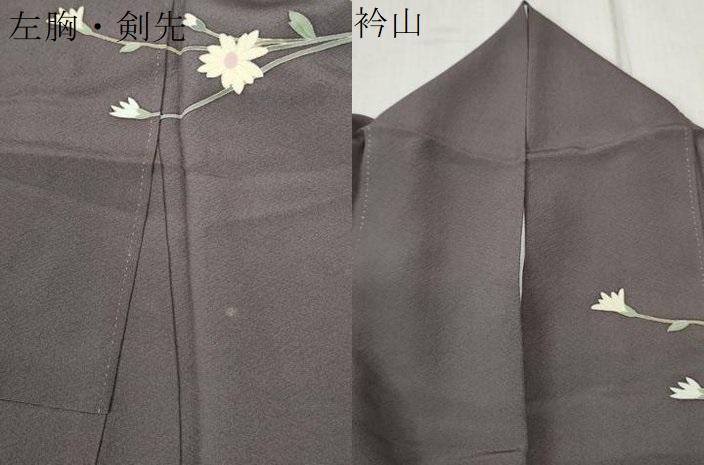 状態は接写画像のように左胸・剣先・衿山に薄い汚れがございますが