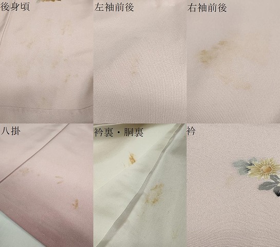 状態は接写画像のように後身頃・左袖前後・右袖前後・八掛・胴裏・衿裏・衿に薄い汚れがございますが