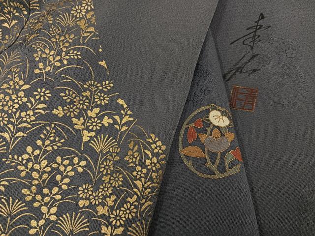 Heiwaya Kimono ● Master Yuzen artist Asai Seijin's formal kimono, floral pattern, pure silk, exquisite piece, AABG4092ph