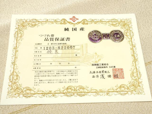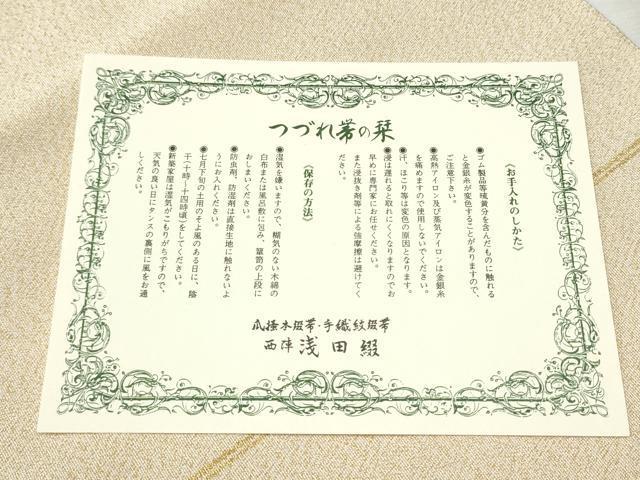 Heiwaya Kimono: Prestigious Asada Tsuzuri, Namaki Hontsuzuri, 8-inch Nagoya Obi, Mirror-Riding, Gold Thread, Comes with Box and Certificate, Pure Silk, Excellent Quality, CABB5760hy