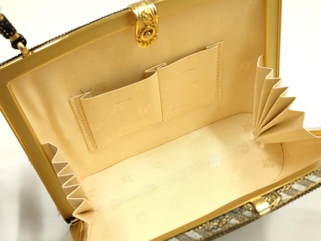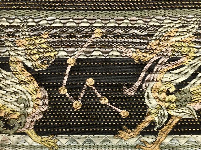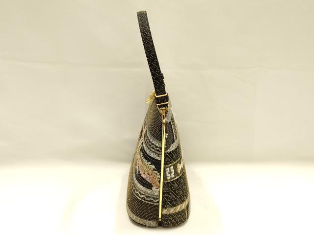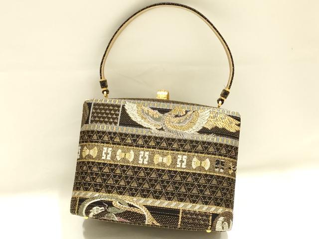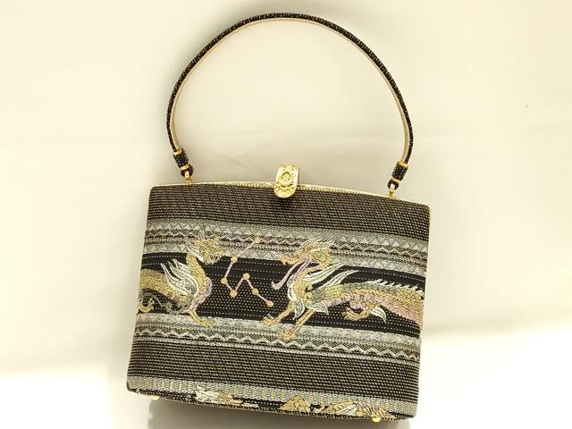 Heiwaya Kimono ● Japanese accessories, Japanese style bag, handbag, Four Divine Beasts, made with obi fabric, rhinestones, black background, gold and silver thread, exquisite item, AABH6618ay