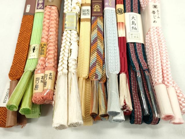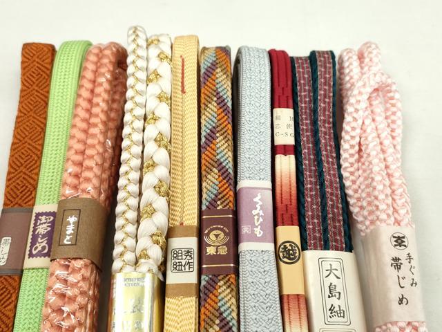 Heiwaya Kimono ● Japanese clothing accessories - Set of 10 obi sashes - Sasanami-gumi weave - Authentic Oshima Tsumugi silk - Round braid - Formal wear - Mitsukoshi and Tokyu Department Store handling - Gold thread - Excellent quality - Unused - CABF7255ju