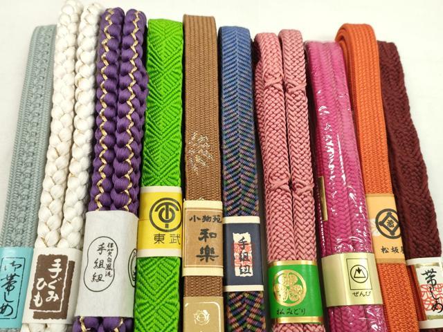 Heiwaya Kimono ● Japanese clothing accessories - Set of 10 obi sashes - Koma-gumi, Kara-gumi, Sasanami-gumi, Mitake-gumi, Hakuho-ryu - Formal wear - Matsuzakaya handling - Gold thread - Excellent quality - Unused - CABF7274ju