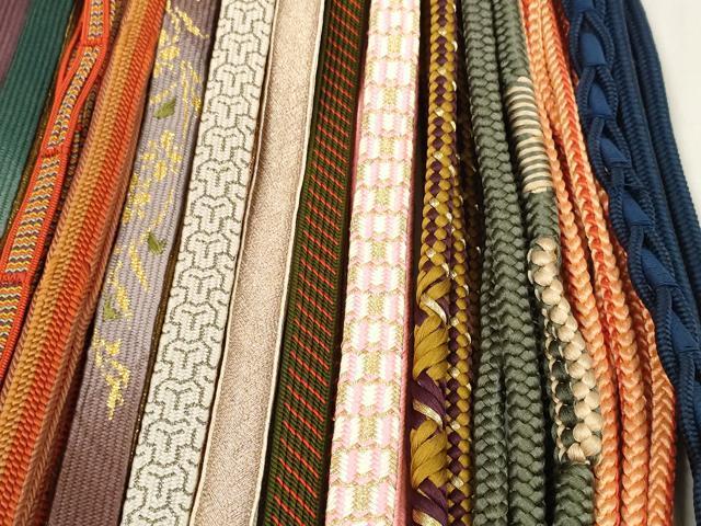 Heiwa-ya Kimono: Japanese Accessories, Set of 20 Obijime (Sash Bands), Korai-gumi (Korean Pattern), Gold Thread, Unused, Excellent Condition, DAAV8342zzz