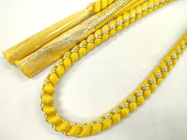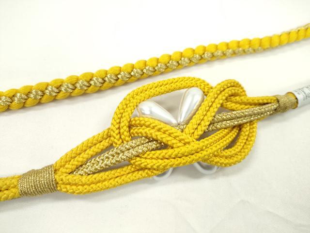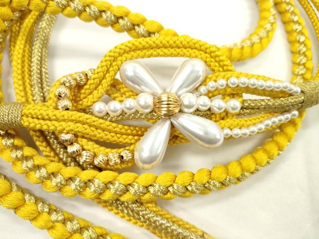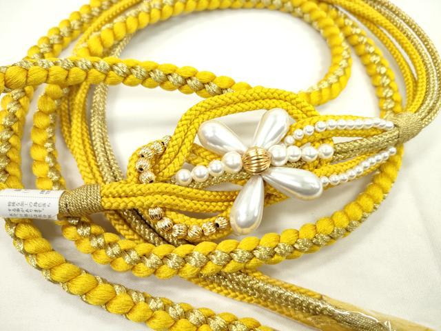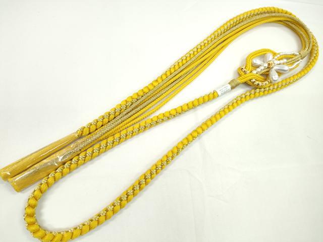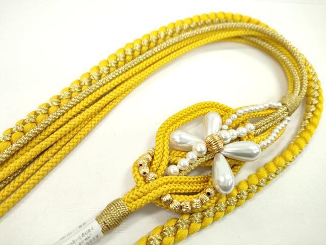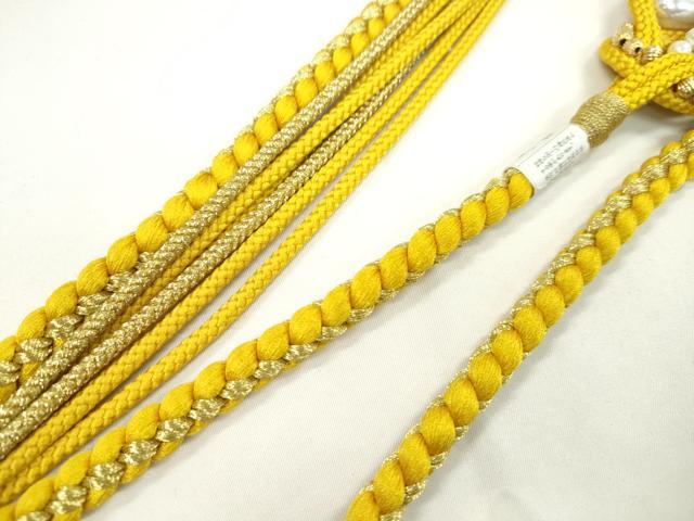 Heiwaya Kimono ● Japanese clothing accessories - Furisode obi sash with decoration - Pearl - Yellow - Gold thread - Cut tassel - Excellent quality - Unused - CABF7219ju