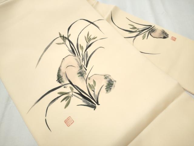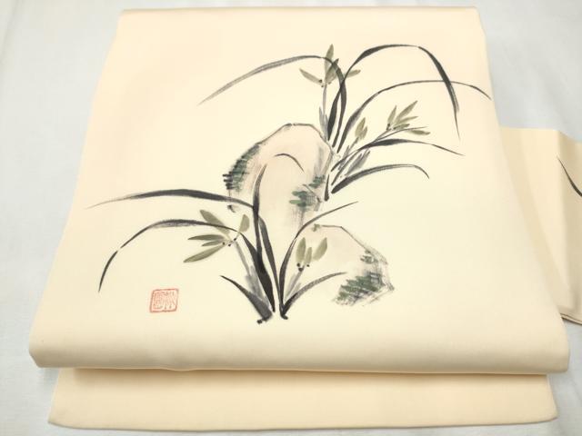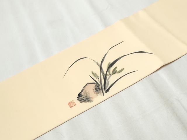 Heiwa-ya Kimono: Shiose 9-inch Nagoya Obi, Artist's Hand-painted Floral Pattern, Pure Silk, Excellent Quality, CABB5604hy